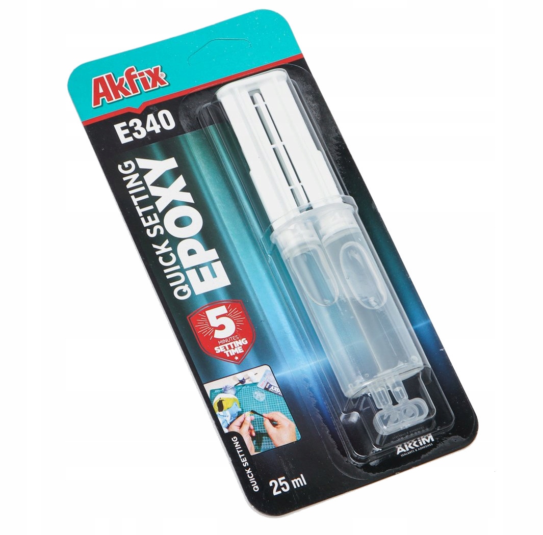 Akfix E340 to dwuskładnikowy bezbarwny klej epoksydowy, wolny od rozpuszczalników, szybkowiążący i niezwykle silny. Doskonale sprawdzi się przy klejeniu metalu, betonu, drewna, szkła i ceramiki i wielu innych materiałów.