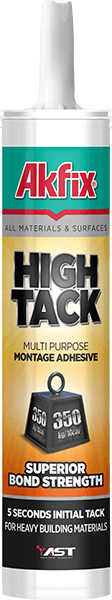Jednoskładnikowy, wysokiej jakości, profesjonalny klej na bazie polimeru AST o dużej sile klejenia i przyczepności początkowej. Nadaje się do klejenia ciężkich materiałów budowlanych bez użycia zacisków i/lub taśmy mocującej.